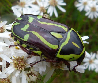 Herewith a snap for those who haven't seen this beetle. The fiddle pattern is quite obvious. They are particularly fond of Bursaria spinosa (although the one depicted is on some form of Olearia! Martin