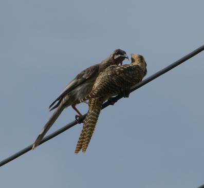 [canberrabirds] Red Wattlebird feeding yng koel Ainslie