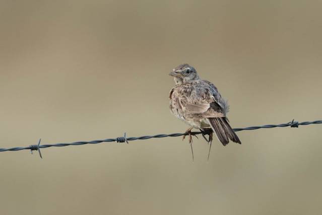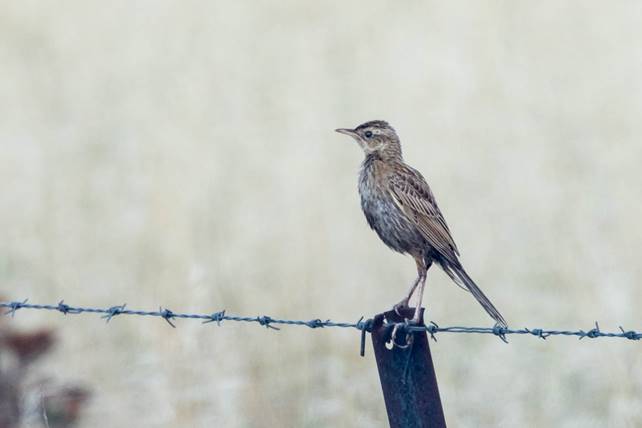this is fairly uniform. Although in this case we don’t need that feature to identify it. Brown Songlarks appear to perch high on their legs, whereas Bushlarks appear to perch low on their legs.